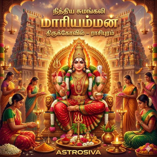 நாமக்கல் மாவட்டம் ராசிபுரம் எனும் ஊரில் நித்திய சுமங்கலி அம்மன் ஆலயம் அமைந்துள்ளது வழக்கமாக அனைத்து மாரியம்மன் ஆலயங்களிலும் சில பண்டிகைகளின் போது அம்மனின் முன் கம்பம் நடப்படும் ஆனால் இக்கோவிலில் இது நிரந்தரமாக நித்திய சுமங்கலி அம்மனுக்கு நேராக நடப்பட்டுள்ளது எனவே இந்த அம்மனுக்கு நித்திய சுமங்கலி எனும் பட்டம் சூட்டப்பட்டுள்ளது